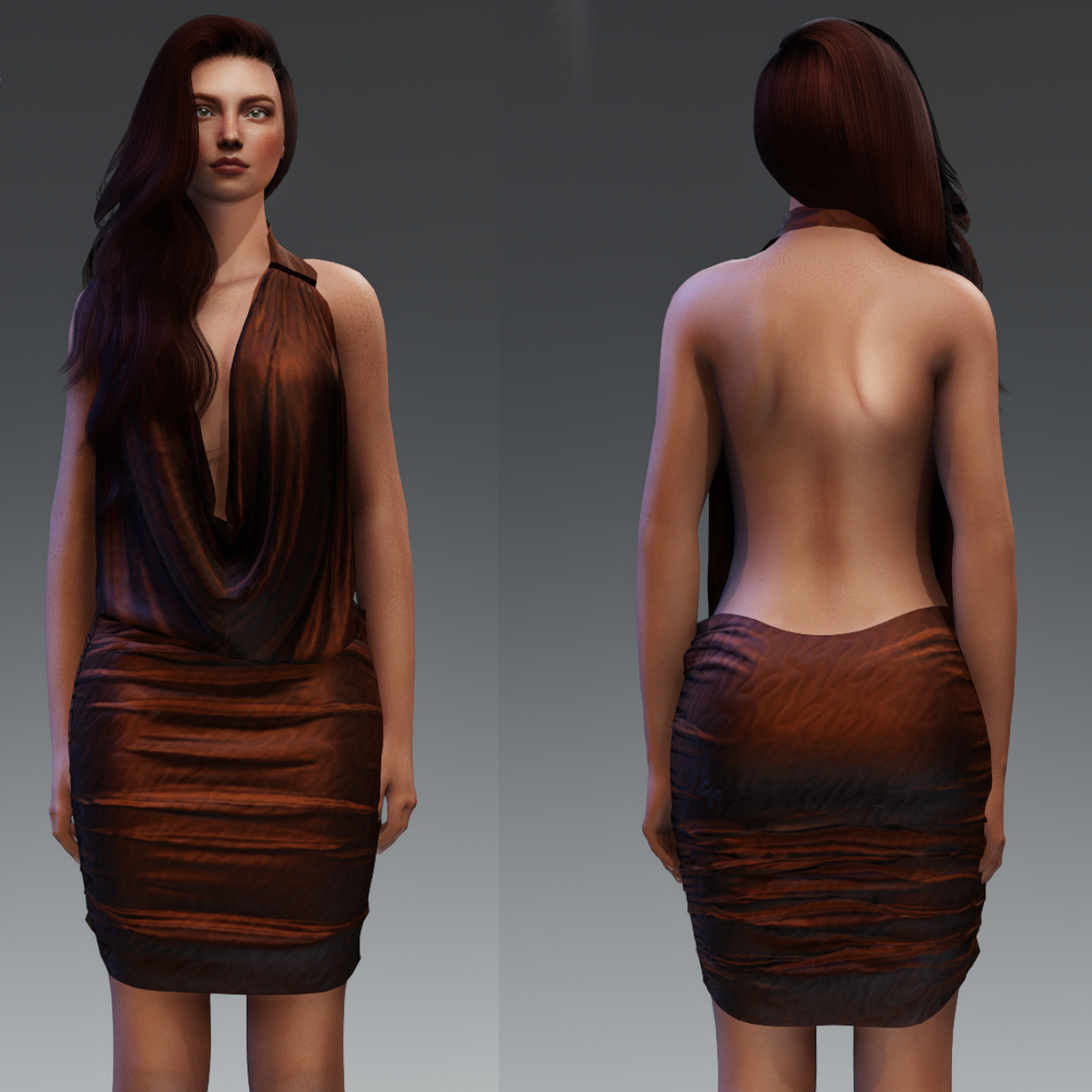 Silky Sexy Satin Scoop Neck Backless Dress Check out my store for more great fabric choices. Made in Marvelous Designer and can be adjusted to fit most avatars. Created on a custom avatar, slightly curvier than AV2.0, to allow for a better custom fit. Will require transform and adjust tools. To learn about transforming and adjusting Marvelous Designer clothing visit this link: https://help.sansar.com/hc/en-us/articles/115005693363-Fitting-Marvelous-Designer-clothing-to-your-avatar#some-tips Pictured with Alina Tested on AV2.0