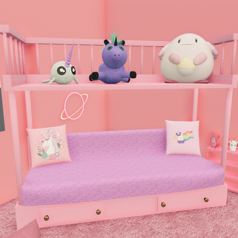 Its a bed, its a sofa, its a place for your plushies! Enjoy the Lillypop! Second photo shows it with plushies! They are not included. You can change the materials to your liking! Has Collision!