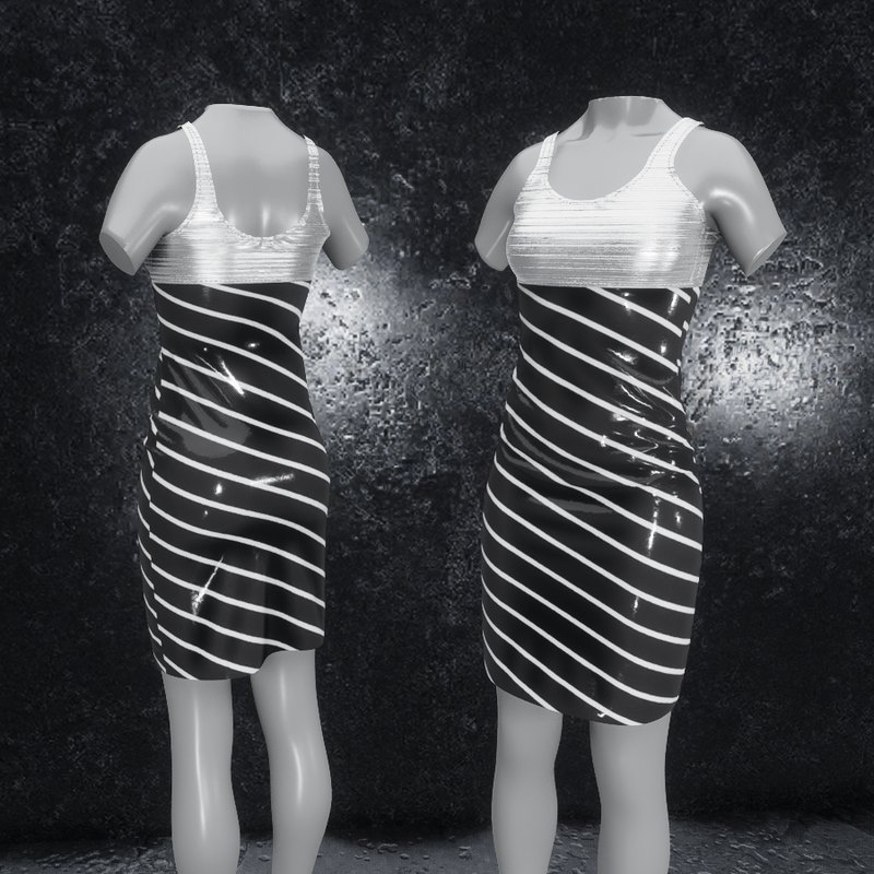 Dress Elly latex stripes black silver