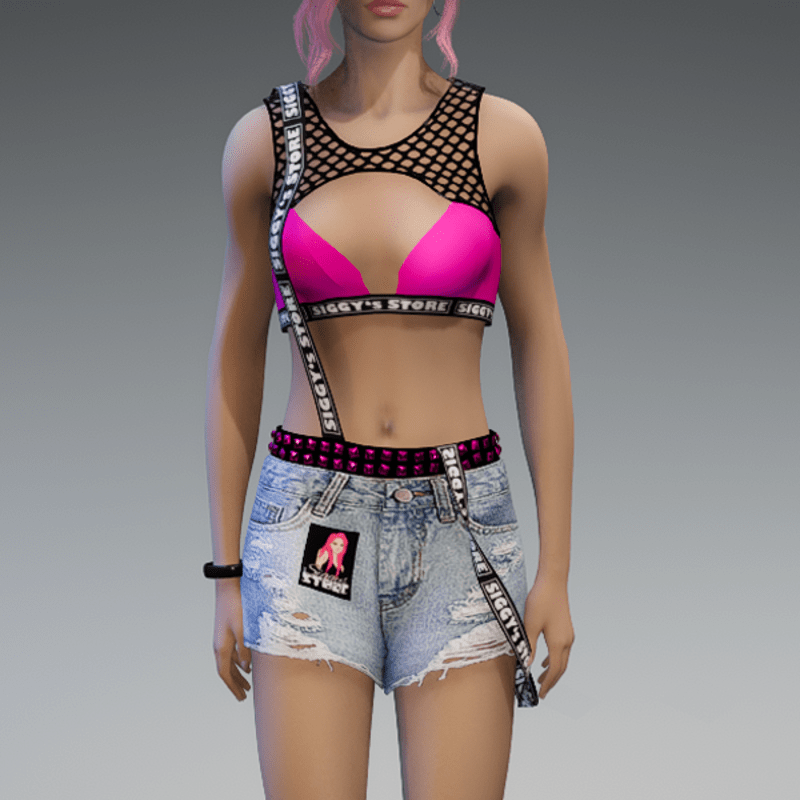 AV2 - Neon Crop Fishnet Top with Rubber Bra