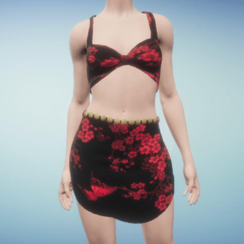 top skirt black red