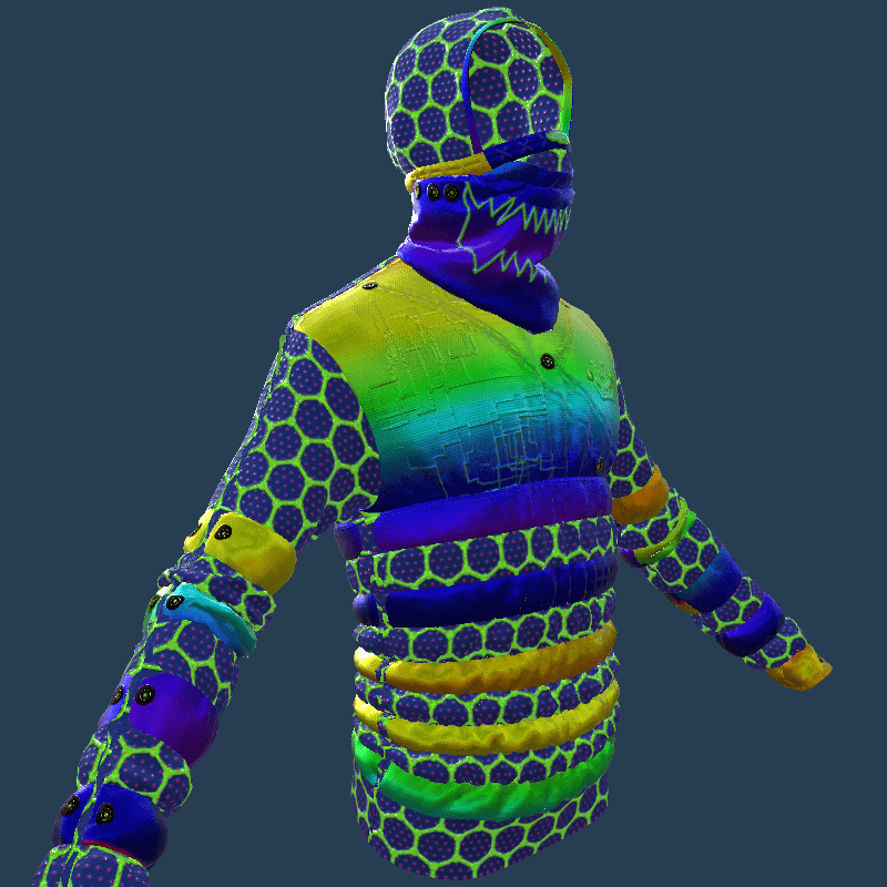 PARTY_ HEXAGON JACKET_ WITH HOODIE_ AND MASK_ COLORS D_ EMISSIVE_