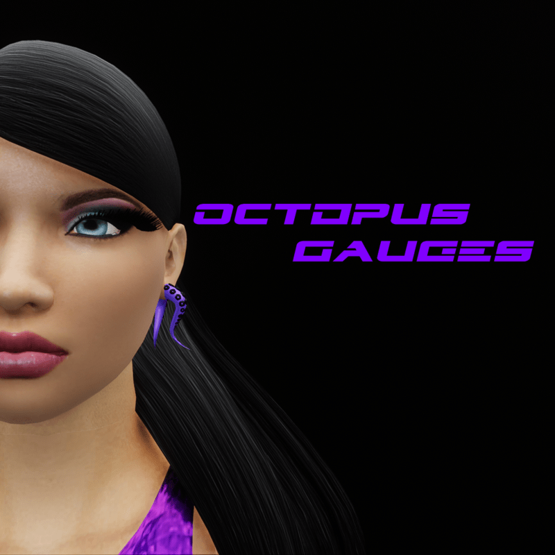Octopus Tentacle Gauge Earrings (Violet Black)