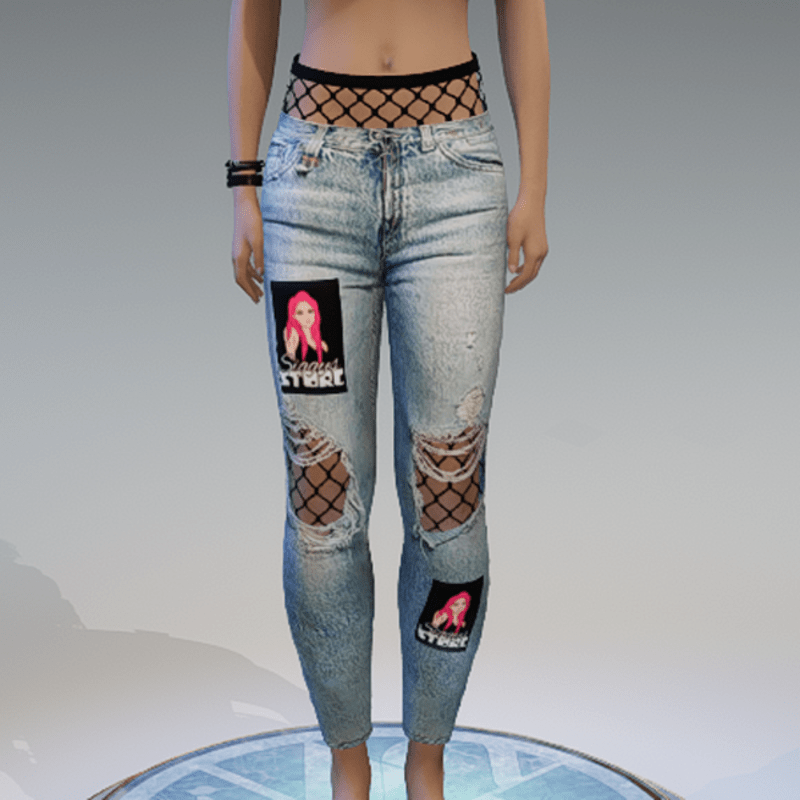 Ripped Denim Pants & Fishnet Siggys Store
