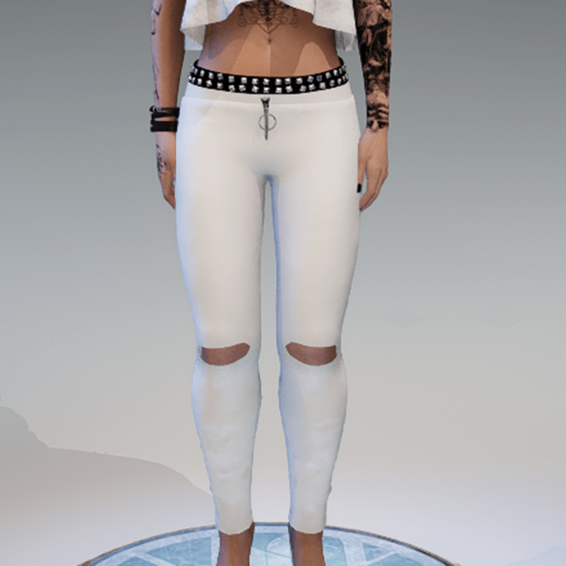 Ripped Leather Pants with Rivetsbelt White