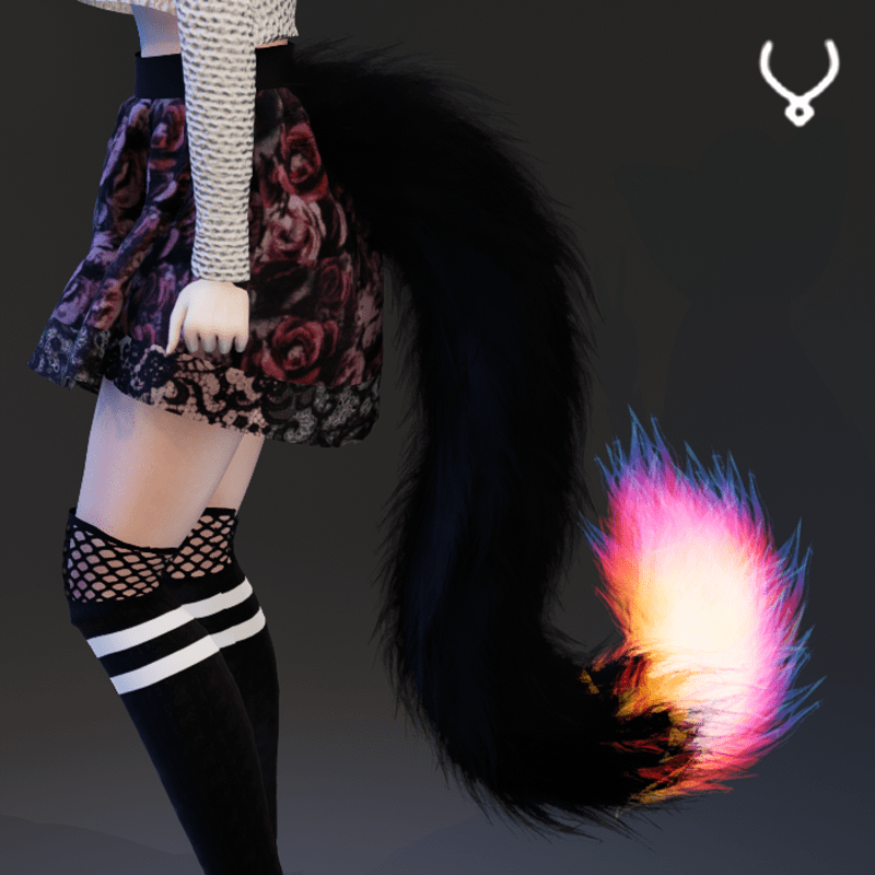 Black & Rainbow Fire - Floofy Cat Tail [Necklace Slot] [Animated]