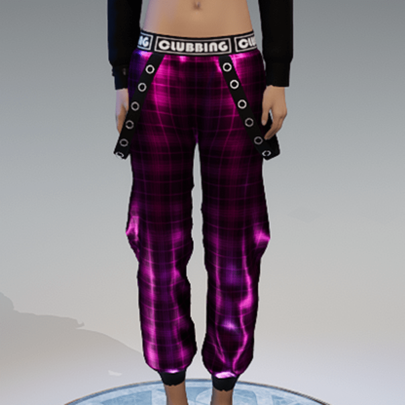 Checkered Metallic Pink Clubbing Sweatpants with Straps