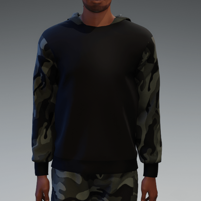Black Hooded Pullover with Camouflage Hood and Sleeves for Men