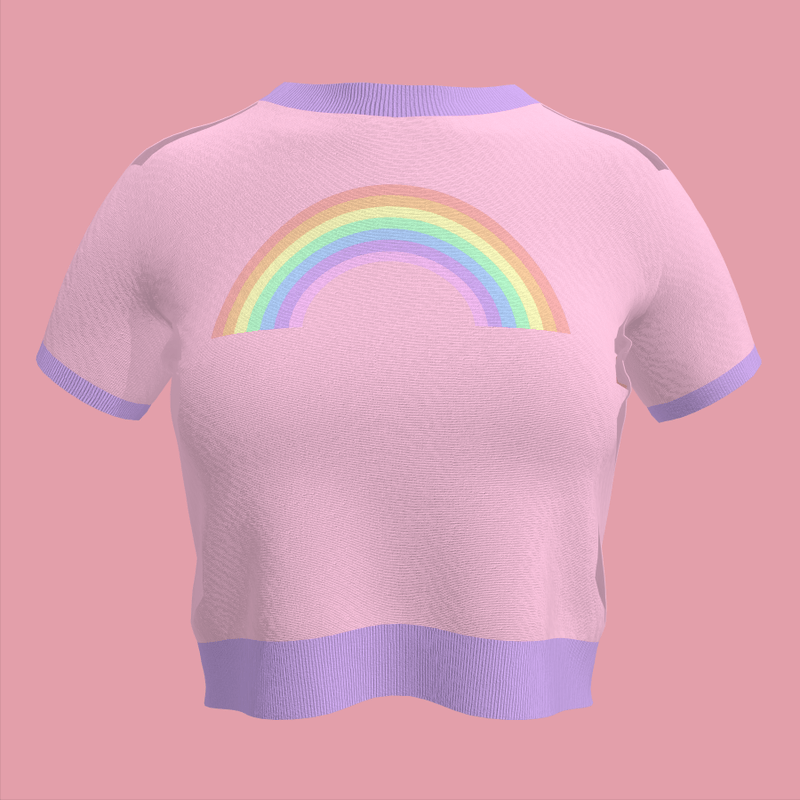 80's Aesthetic Belly Button Shirt (Pastel Rainbow V3)