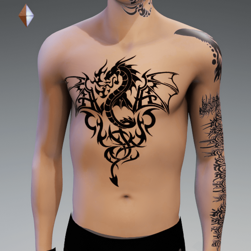 DRAGON 4 TATTO CHEST MALE