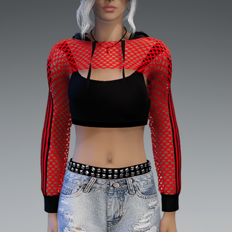 Mesh Hoodie + Top Red & Black Stripes