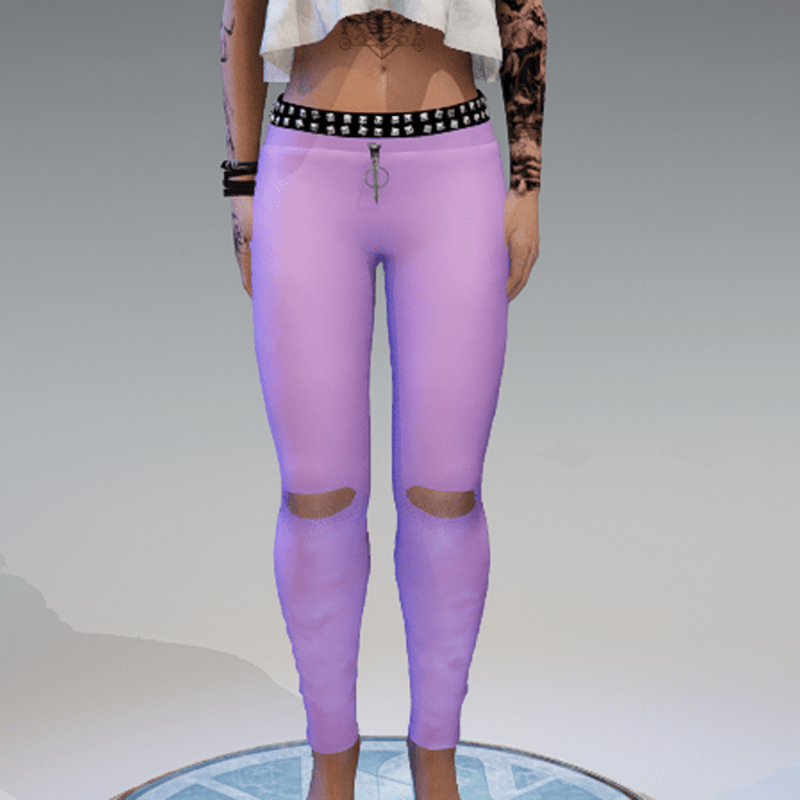 Ripped Leather Pants with Rivetsbelt Lilac