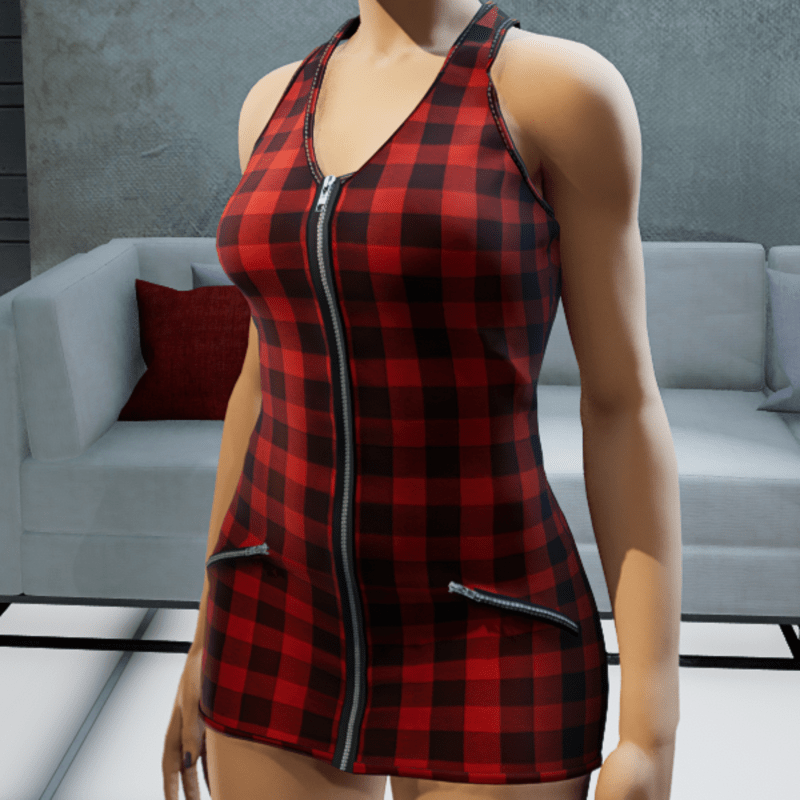 Zipper Dress-Red Plaid