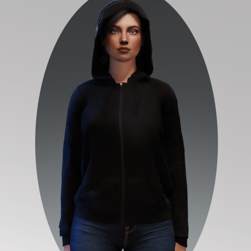 Zip Down Hoodie - Black