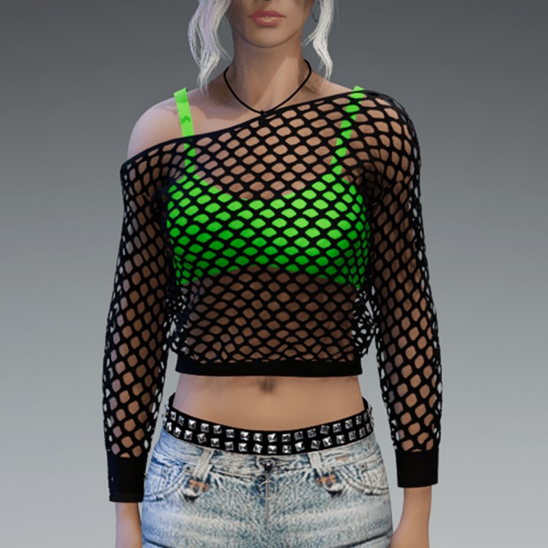 Oneshoulder Black Mesh Sweater & Green Top