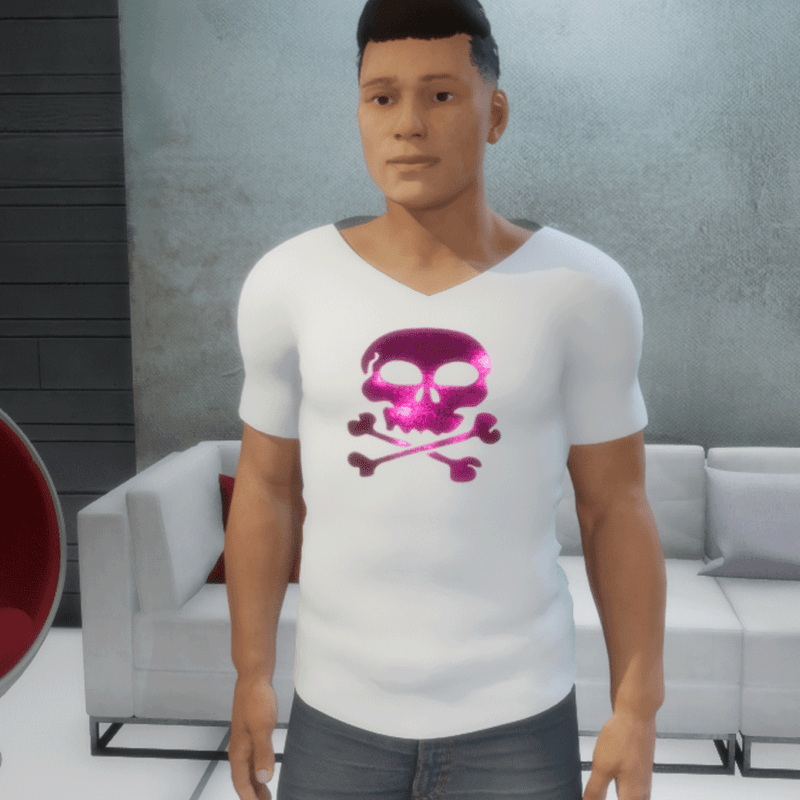 Shirt shiny skull white pink
