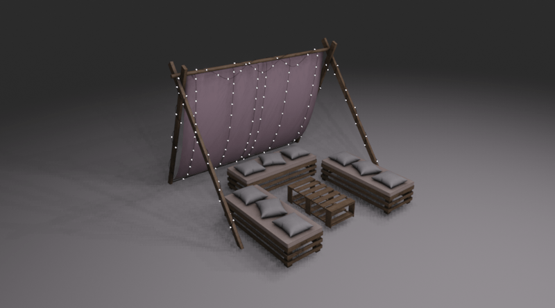 Corner Saloon - Pink - With Ceiling Lamps