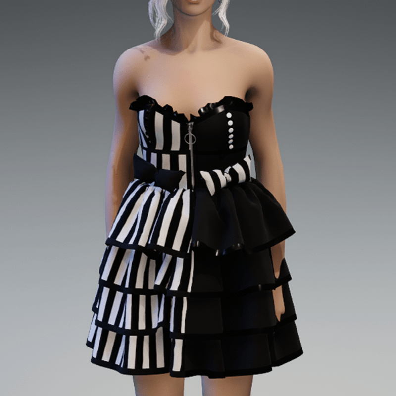 Lolita Dress V2 Black&White Striped with Bows