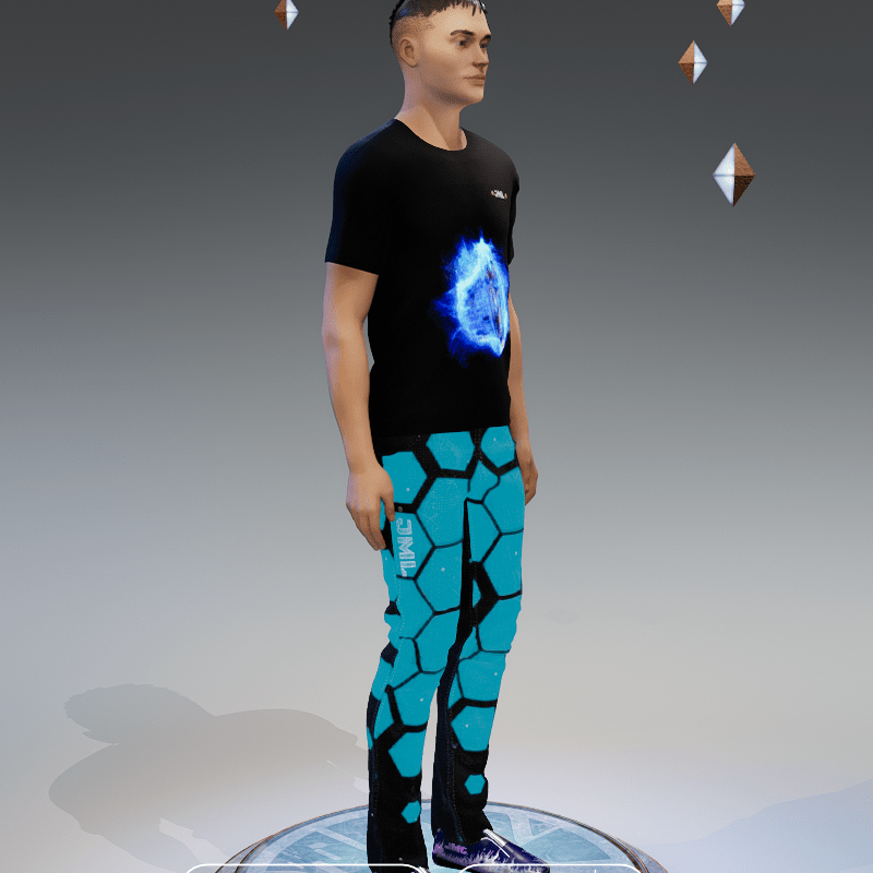 UNISEX_ PANTS_ HEXAGON CYAN_ ANIMATED_ EMISSIVE_