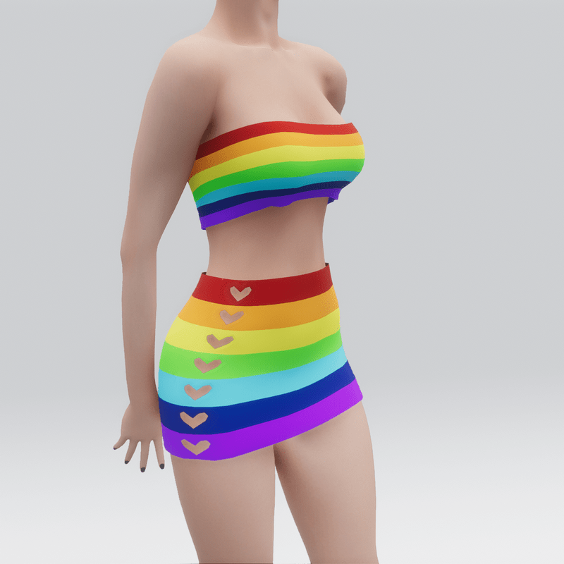 Rainbow Heart Crop Top and Skirt