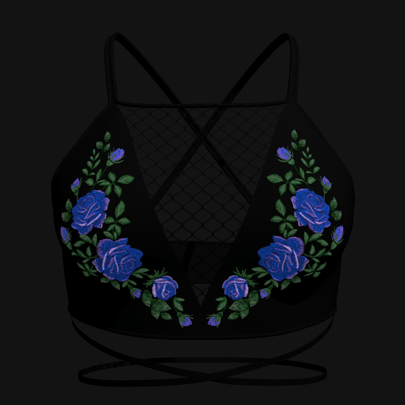 Elegant Top with Lace in Black V3 with Roses3 Pattern