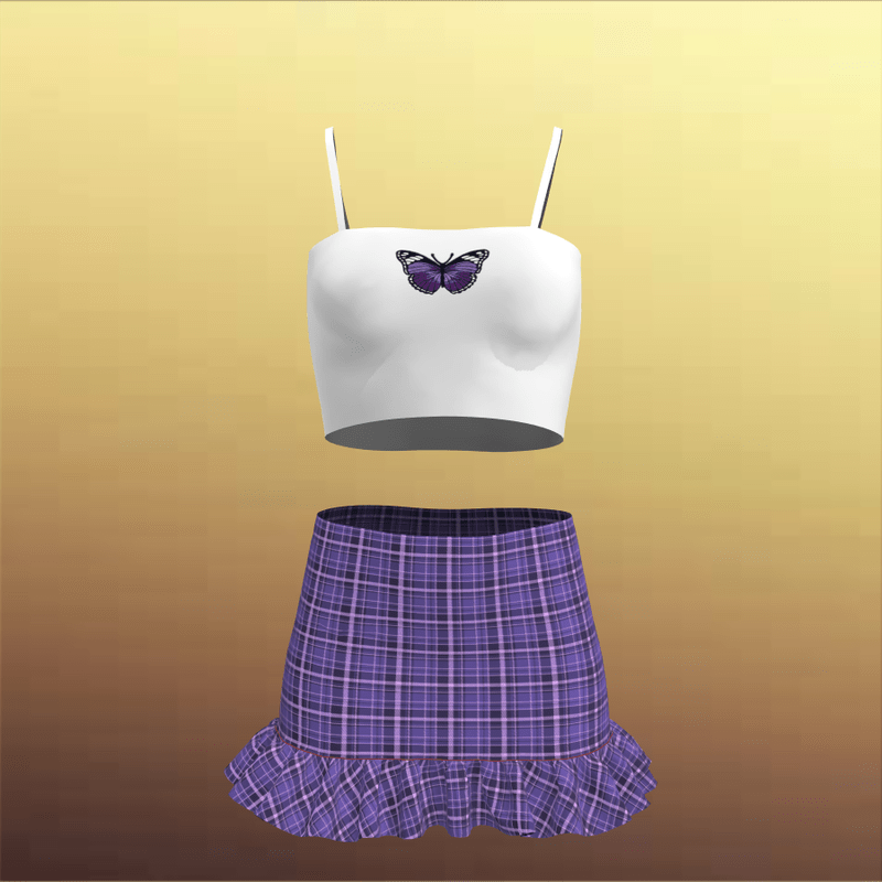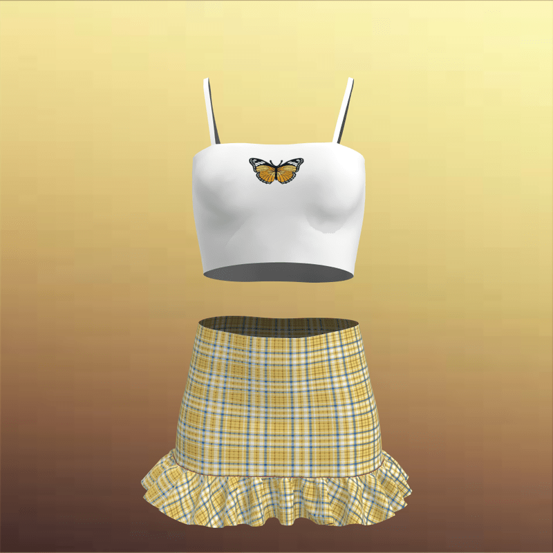 Butterfly Spaghetti Strap Shirt and Tartan Skirt 01