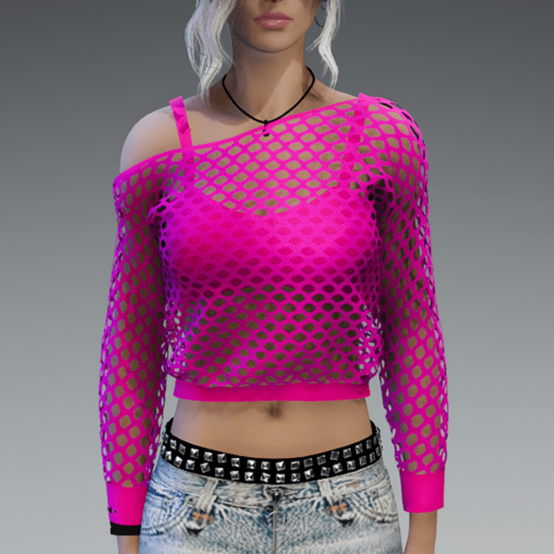 Oneshoulder Mesh Sweater & Top All Pink