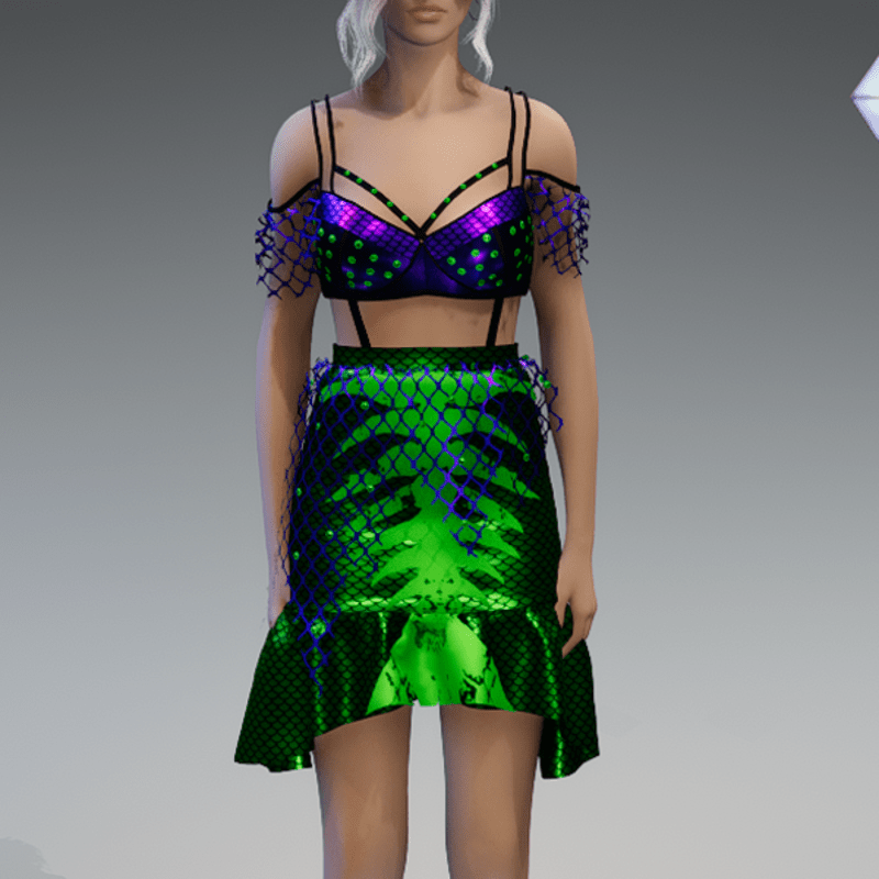 Miss Dead Mermaid Halloween Dress Green&Purple