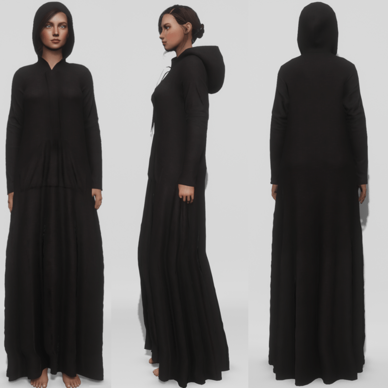 Floor Length Pullover Hoodie - Black