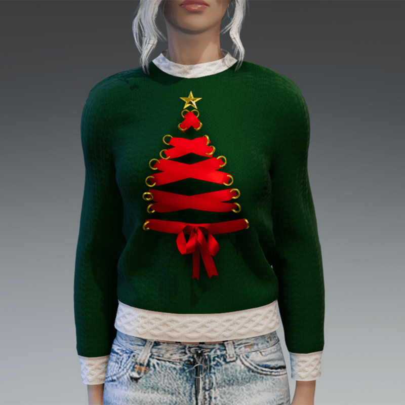 Christmas Sweater "Xmas Tree Gift" in Green & White