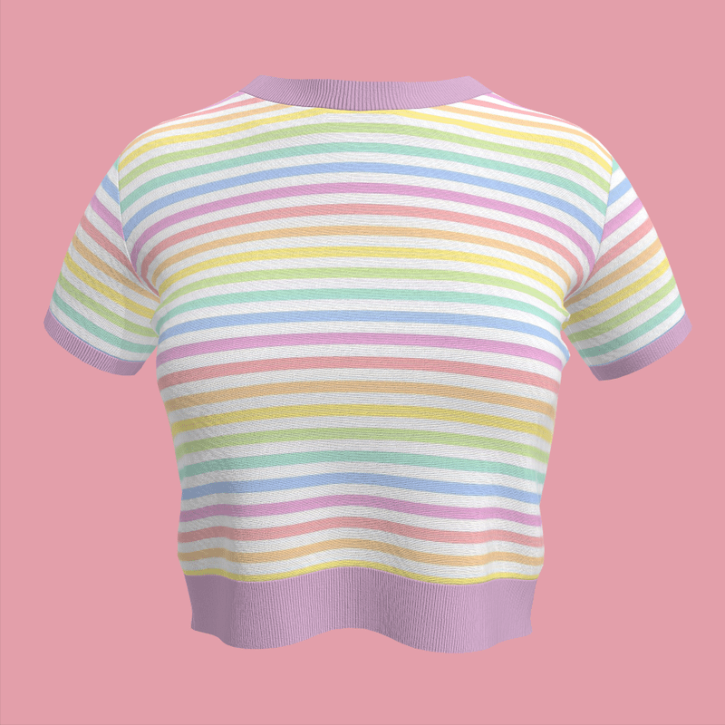 80's Aesthetic Belly Button Shirt (Pastel Rainbow Stripes V1)