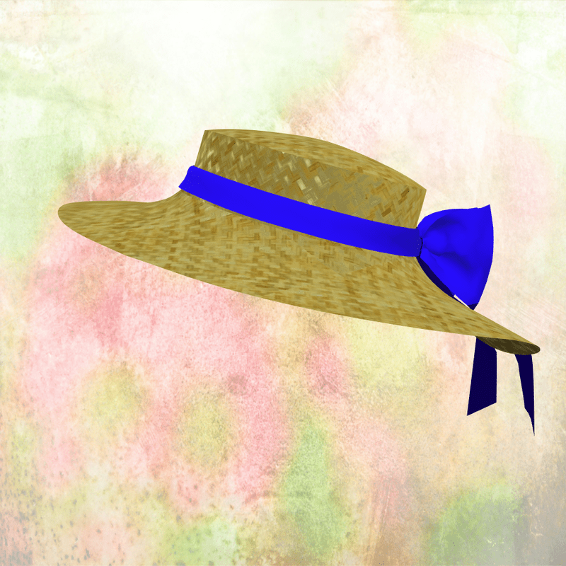 Straw Hat W Blue Ribbon