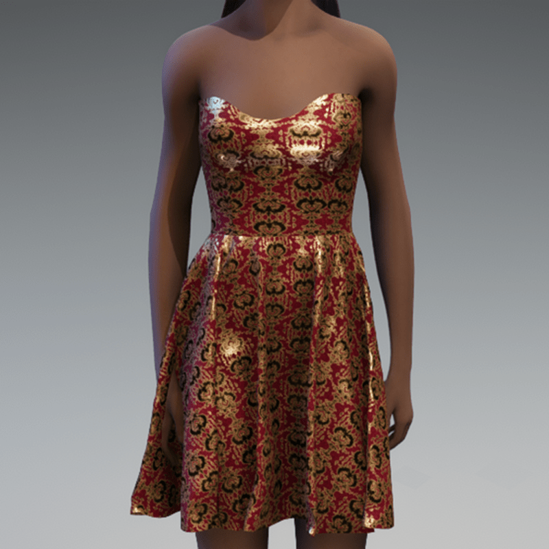 Metallic accent damask party dress