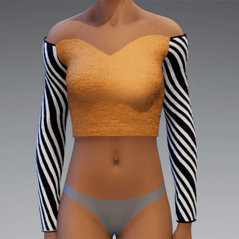 Tangerine & black and white striped sleeve top