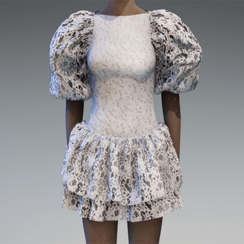 White lace large puff sleeve dress