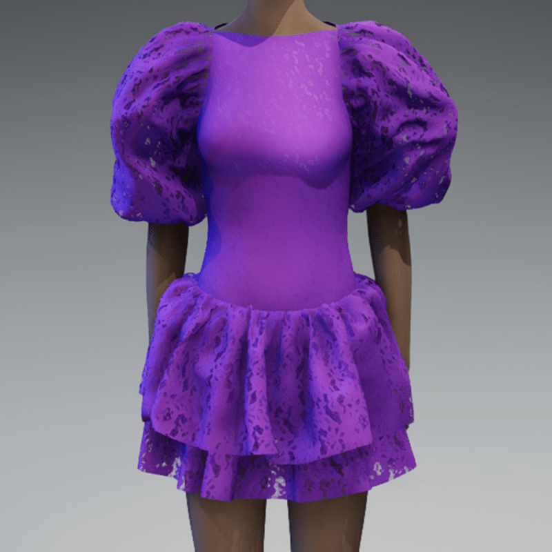 Violet lace large puff sleeve dress
