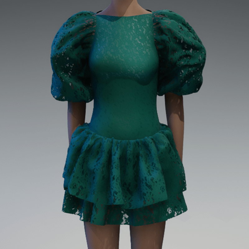 Emerald lace large puff sleeve dress