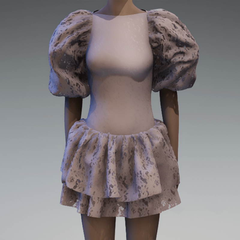 Grey lace large puff sleeve dress