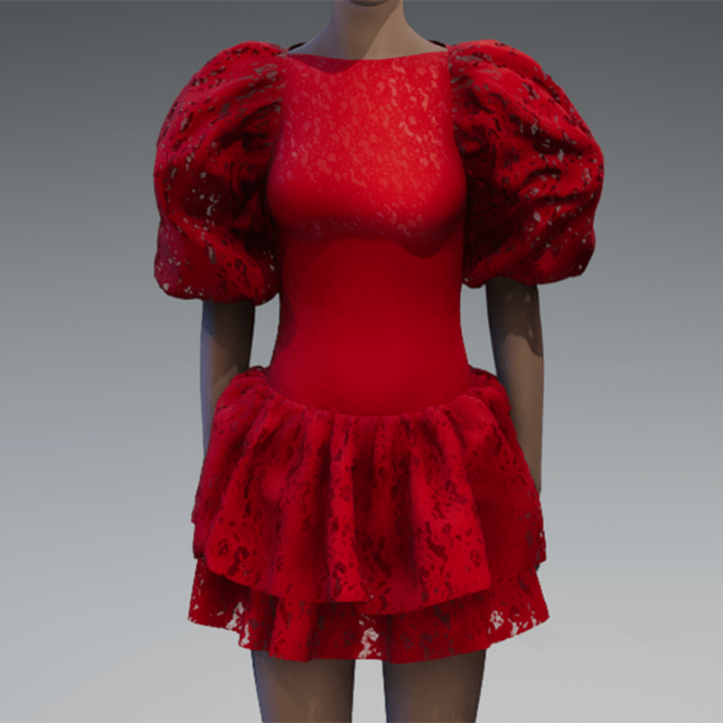 Red lace large puff sleeve dress