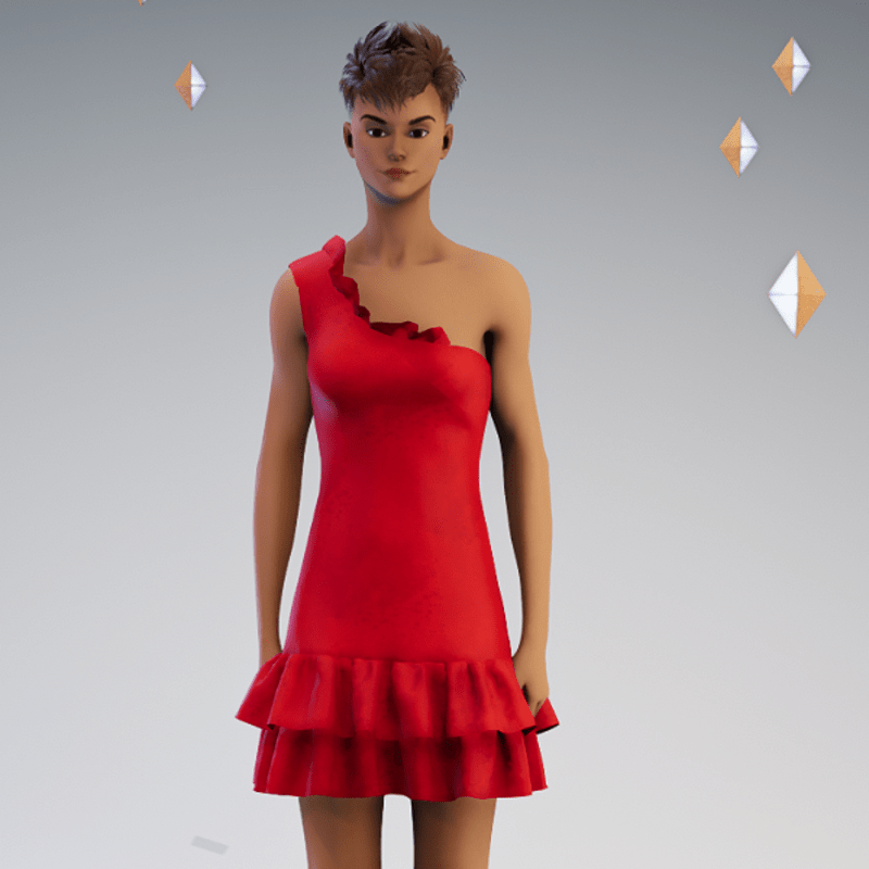 Ruffled Asymetrical Club Dress in Red - Avatar 2.0 with minimal adjustments