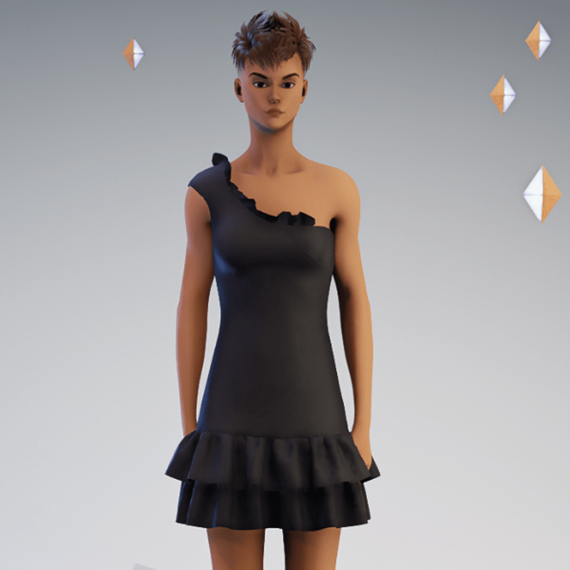 Ruffled Asymetrical Club Dress in Black - Avatar 2.0 with minimal adjustments
