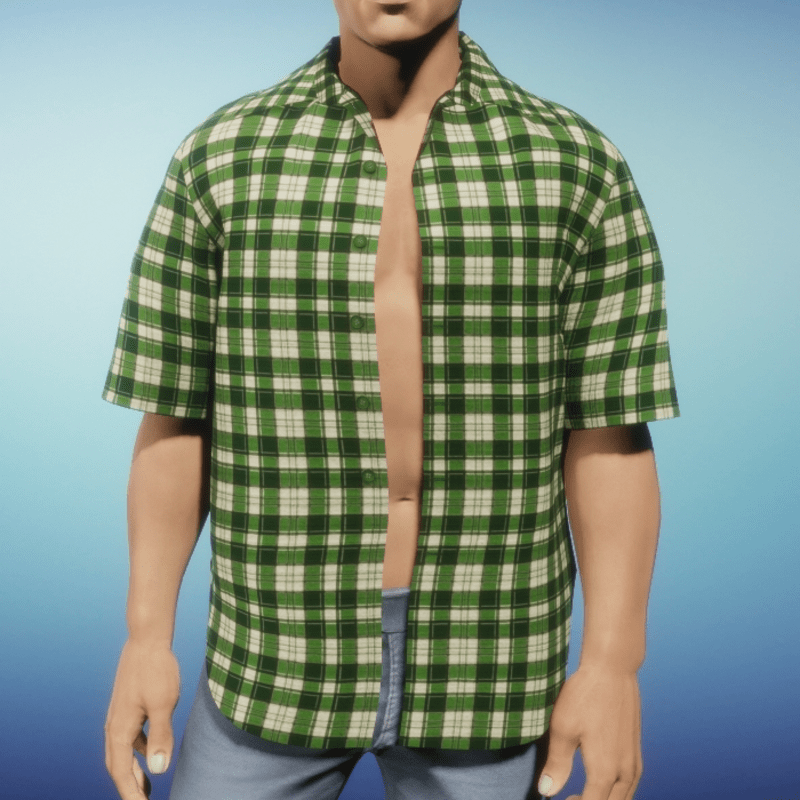 Mens Short Sleeve Shirt - Green Plaid
