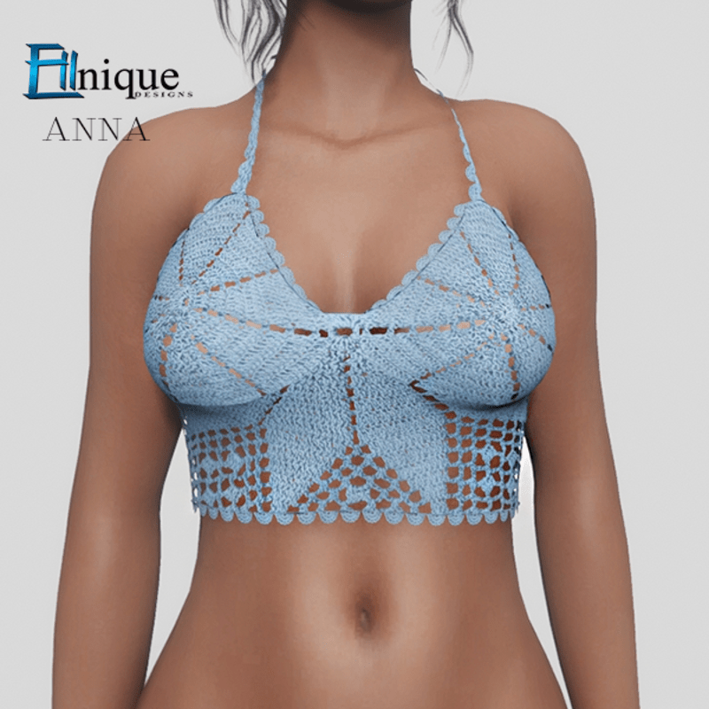 Anna Sky Blue Crochet Knit Top
