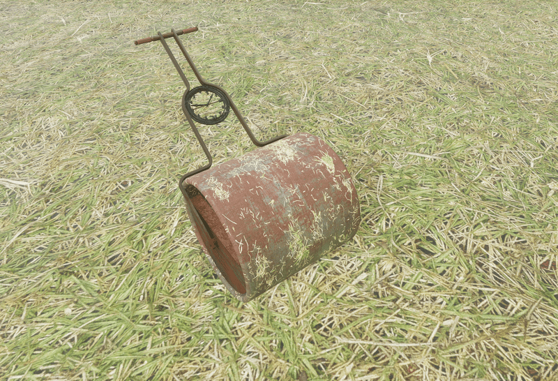 Lawn Roller (TM) rusty with grass