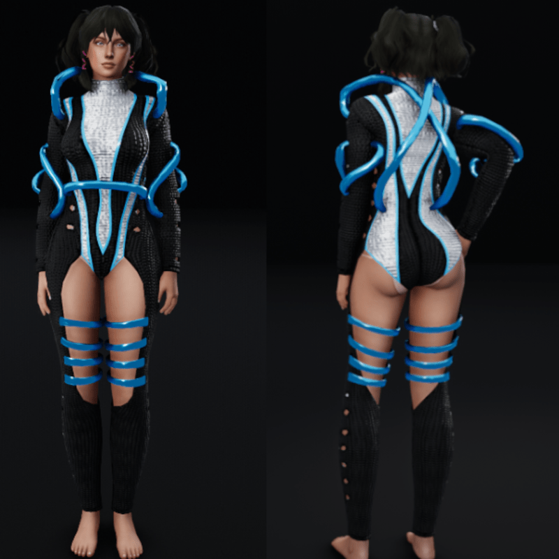 Futuristic Body Suit with Metal Tubes - Deep Sky Blue