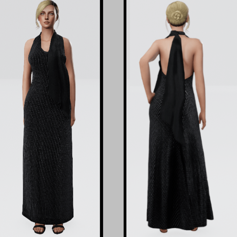 Sparkling Striped Evening Gown - Black