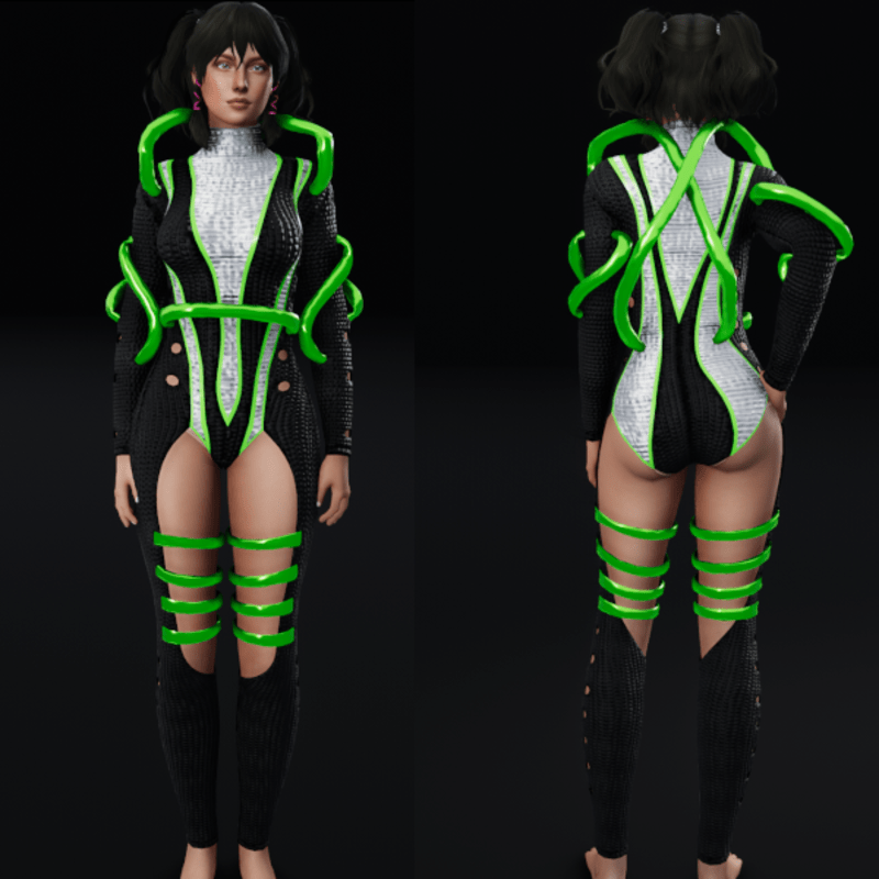 Futuristic Body Suit with Metal Tubes - Lime