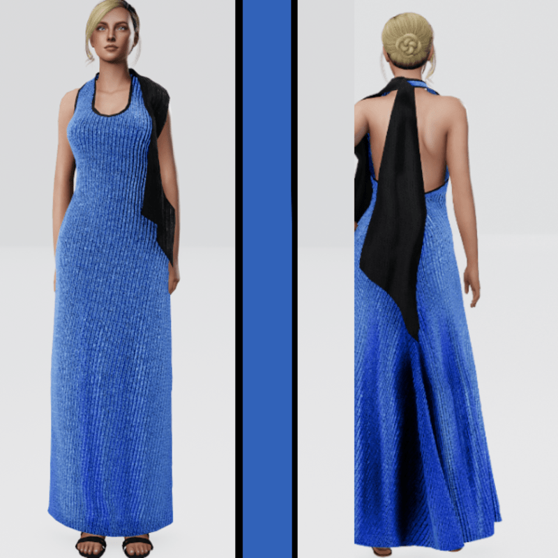 Sparkling Striped Evening Gown - Blue