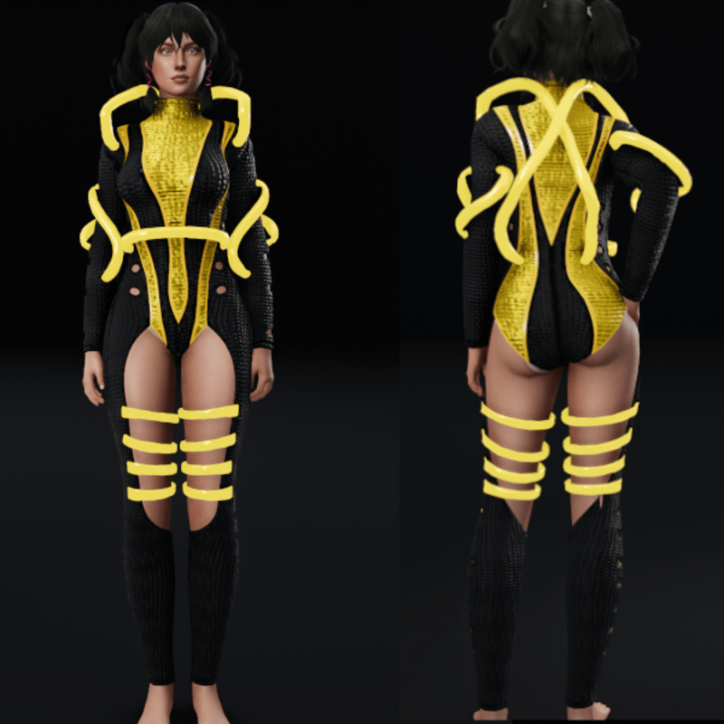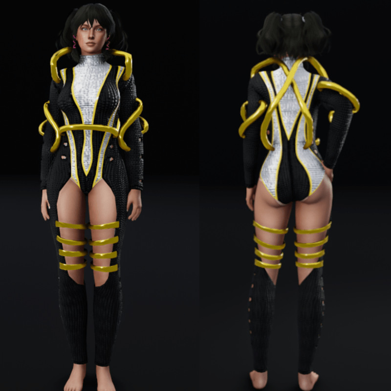 Futuristic Body Suit with Metal Tubes - Gold