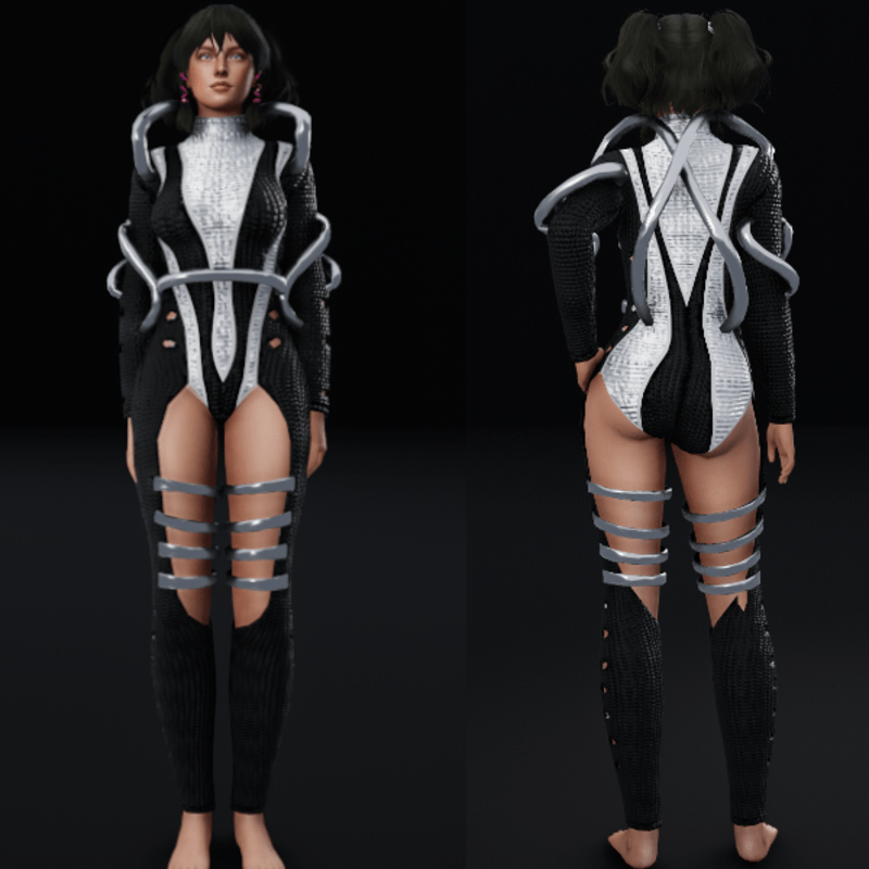 Futuristic Body Suit with Metal Tubes - Chrome